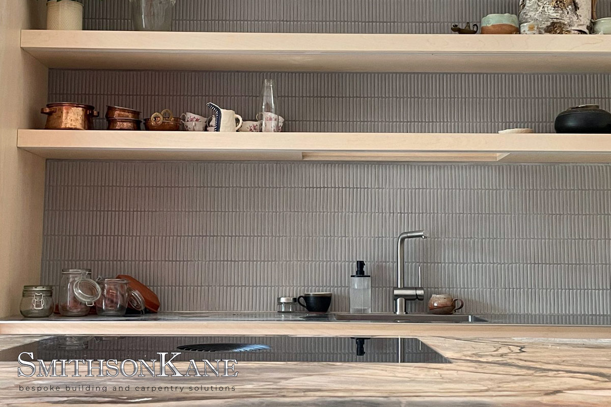 This contemporary kitchen showcases a striking balance of modern design and natural materials. Featuring bespoke cabinetry and luxurious marble surfaces, every detail is crafted to enhance both beauty and practicality. Designed for both style and functionality, this space seamlessly blends modern aesthetics with high-quality materials.